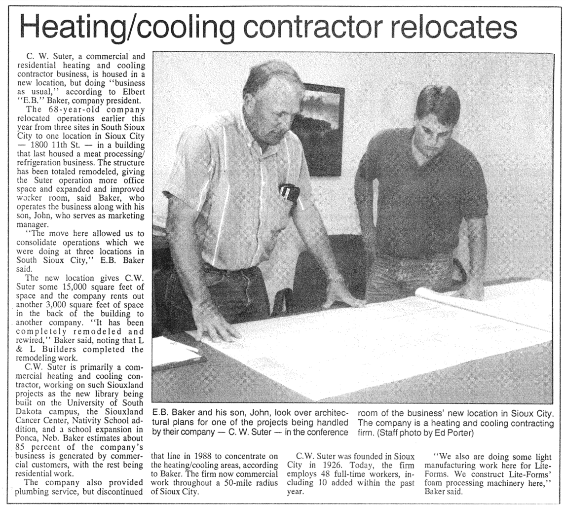 CW Suter Services moves to their current location in Sioux City, Iowa.